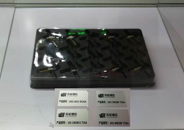 本次展会,苏驼通信展出产品包括5G前传的25G CWDM 6波、MWDM 12波、Lan-WDM 12波等模块以及10G\25G BiDi产品、10G CWDM 12波产以及CWDM 18波等产品,目前,苏驼通信已全方位覆盖5G前传模块领域。