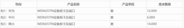 您现在的位置:首页 > 行业资讯根据公告介绍,2020省际骨干传送网扩容工程采购的设备主要为:省际骨干传送网OTN设备,扩容项目三家的OTN设备总需求量为32套。