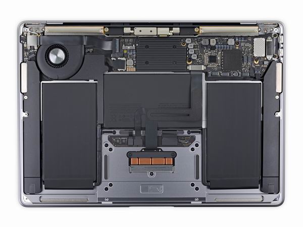 MacBook Pro内部的改变比MacBook Air还少,iFixit很乐意看到MacBook Pro内部没有大的改变,这意味着一些零部件可以和上代产品通用,大大降低了维修的周期和成本。