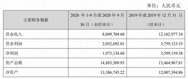 最近一年及一期财务数据: