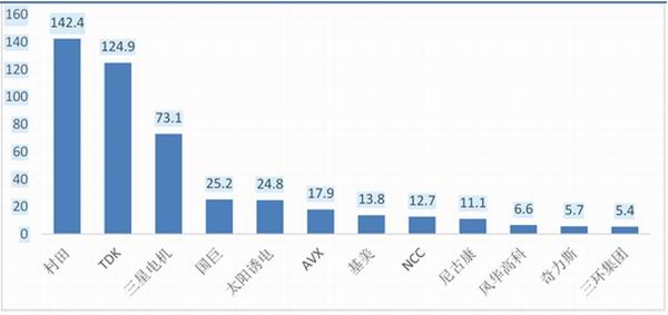 图1、2019年全球被动元器件主要厂商营收排行(亿美元)