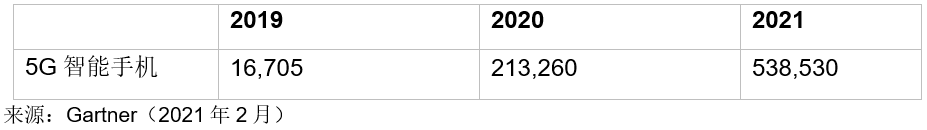 由于新冠疫情对行业的影响,2020年智能手机销售量的跌幅达到10.5%。预计2021年智能手机销售量将出现回升。亚太地区成熟市场、西欧和拉丁美洲预计将在2020年至2021年期间出现最强劲的增长(见表一)。
